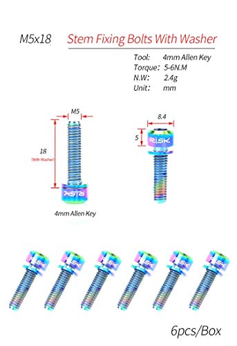 Pack of 6 pcs Titanium Bolts Screws for MTB Road Bicycle and Mountain Bike Stem, M5X18mm (Oil Slick)